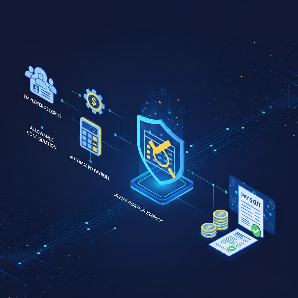 Automate employee records, configure allowances, and run payroll with audit-ready accuracy.